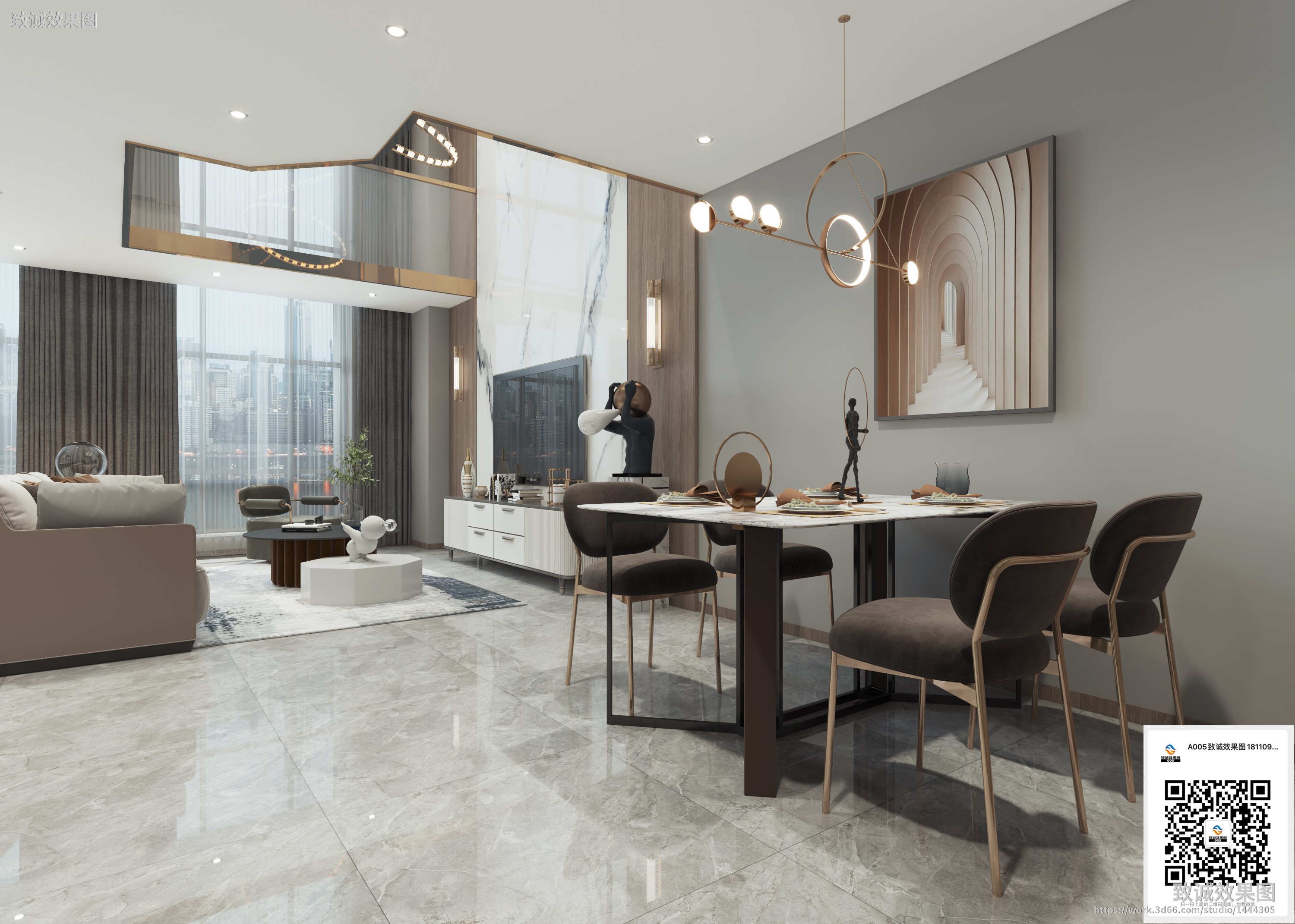 【作品案列】致诚效果图 丨轻奢餐厅