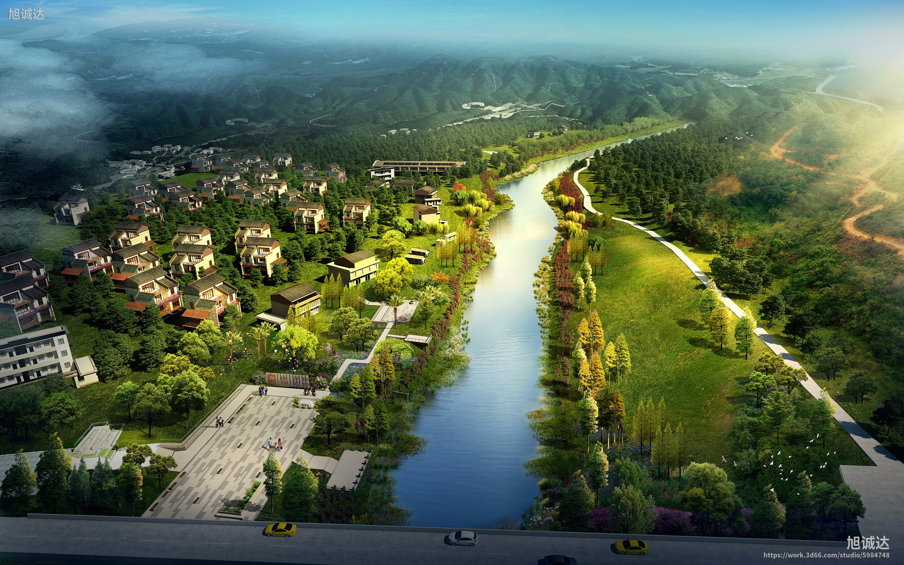 【作品案列】旭诚达 丨河岸景观鸟瞰