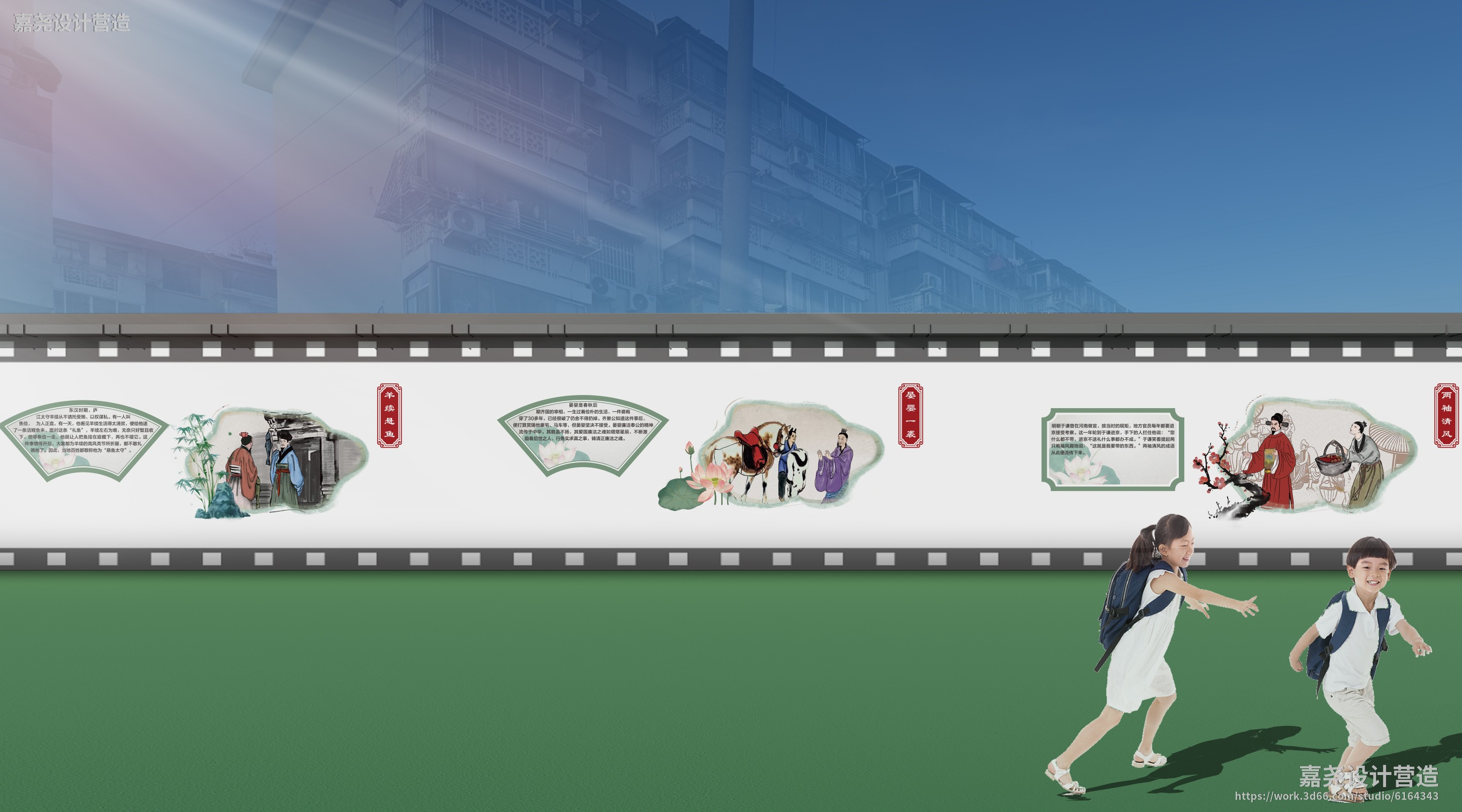 【作品案列】嘉尧设计营造 丨学校--校园文化墙--传统文化墙绘