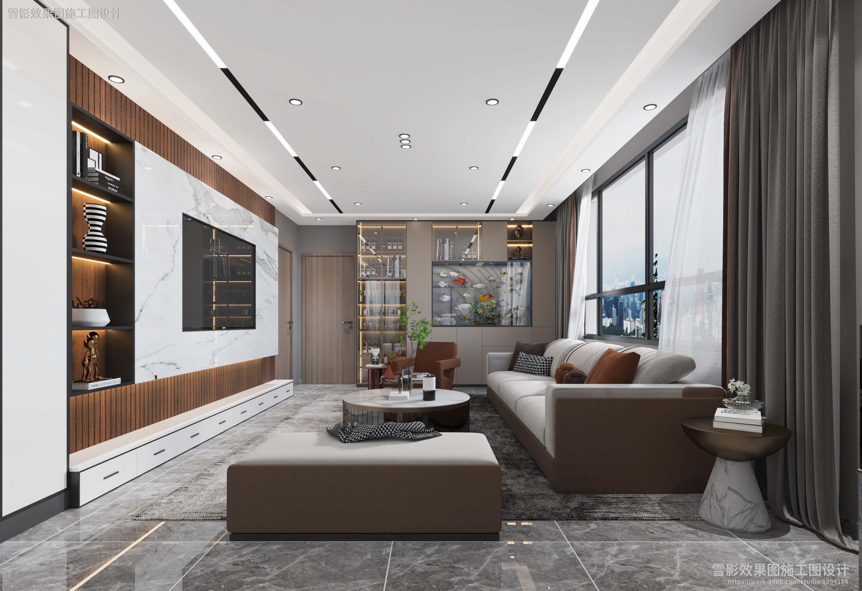 【作品案列】雪影效果图施工图设计 丨客厅