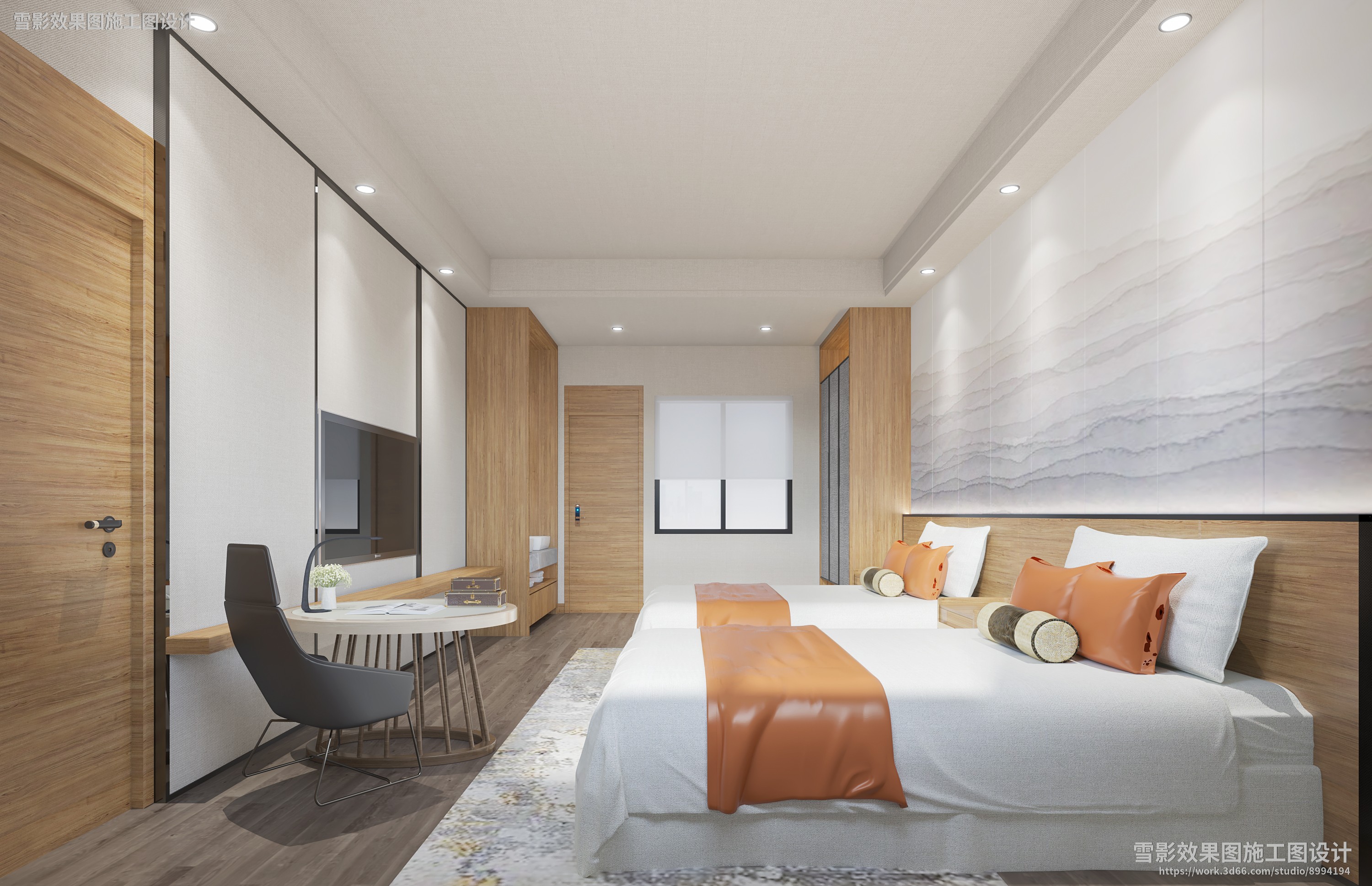 【作品案列】雪影效果图施工图设计 丨标间
