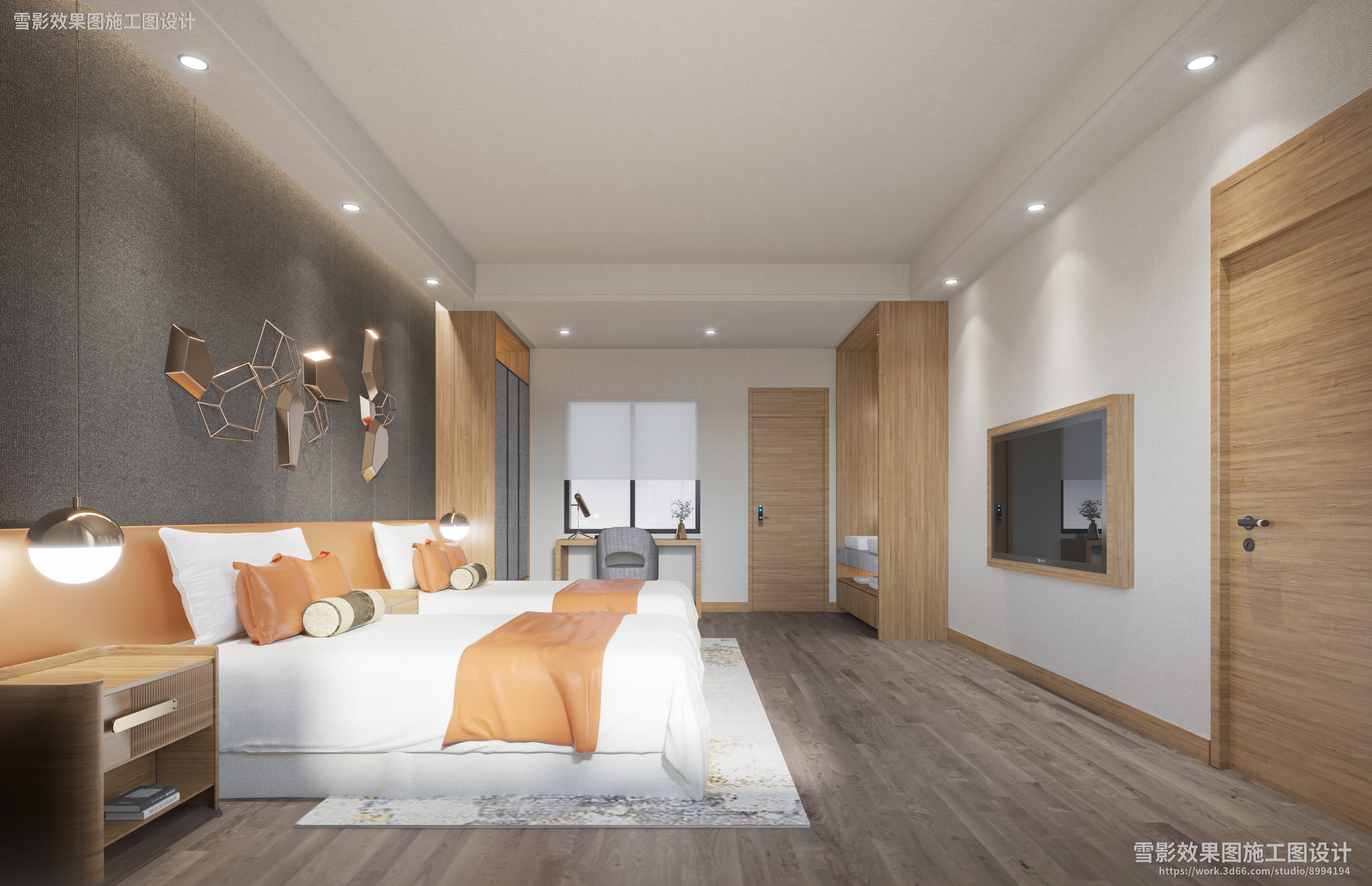 【作品案列】雪影效果图施工图设计 丨标间