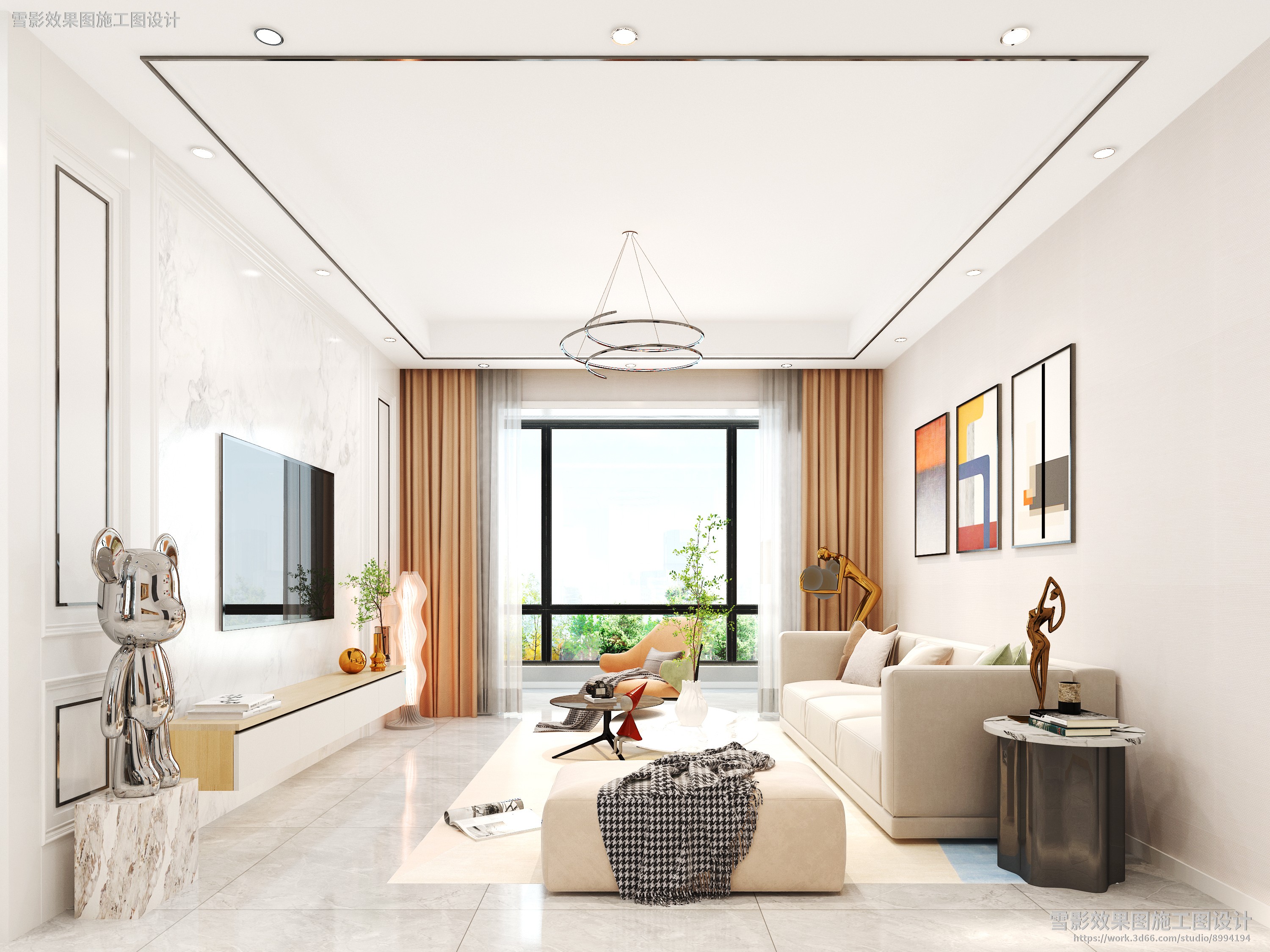 【作品案列】雪影效果图施工图设计 丨客厅