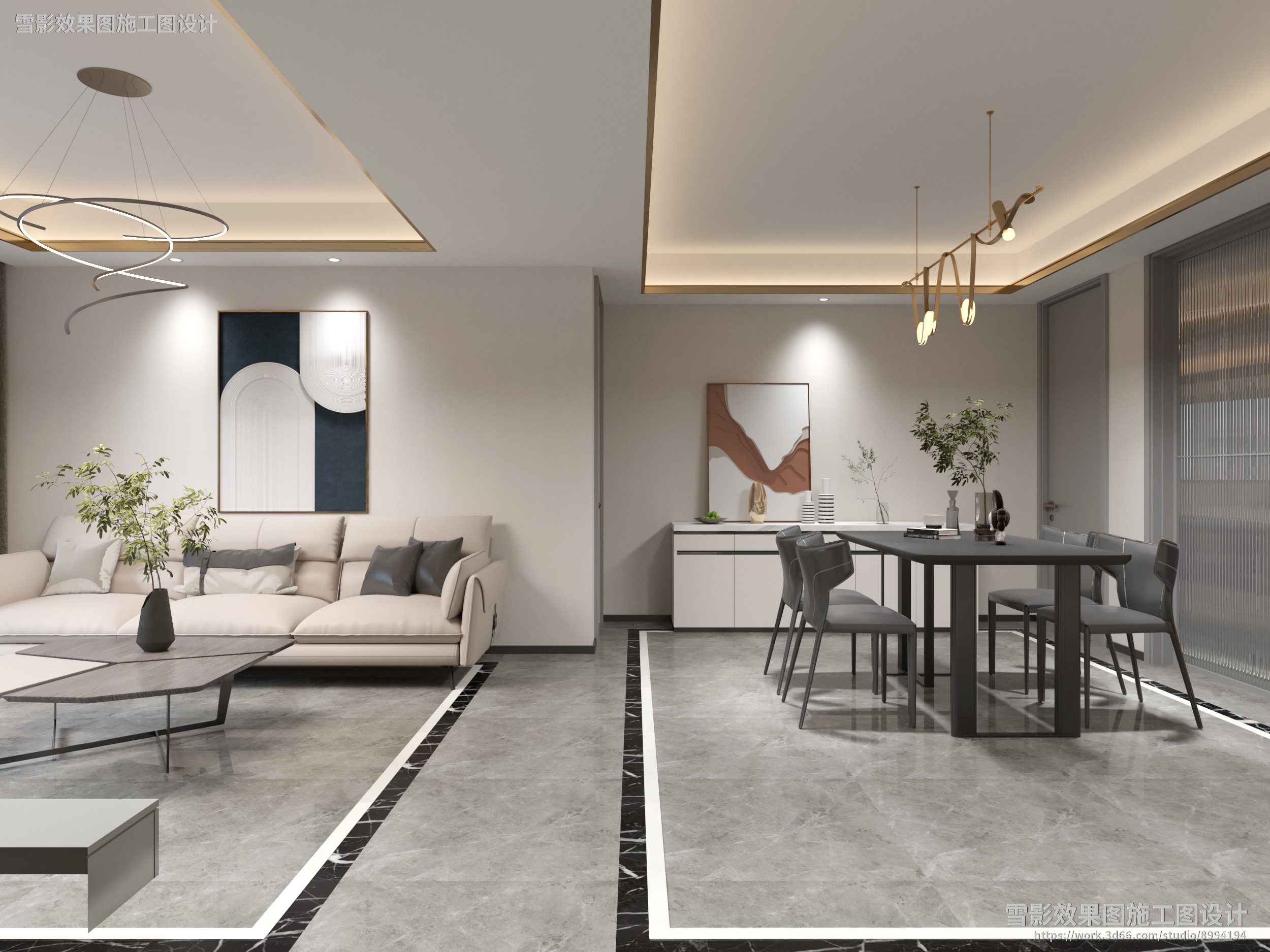 【作品案列】雪影效果图施工图设计 丨客厅