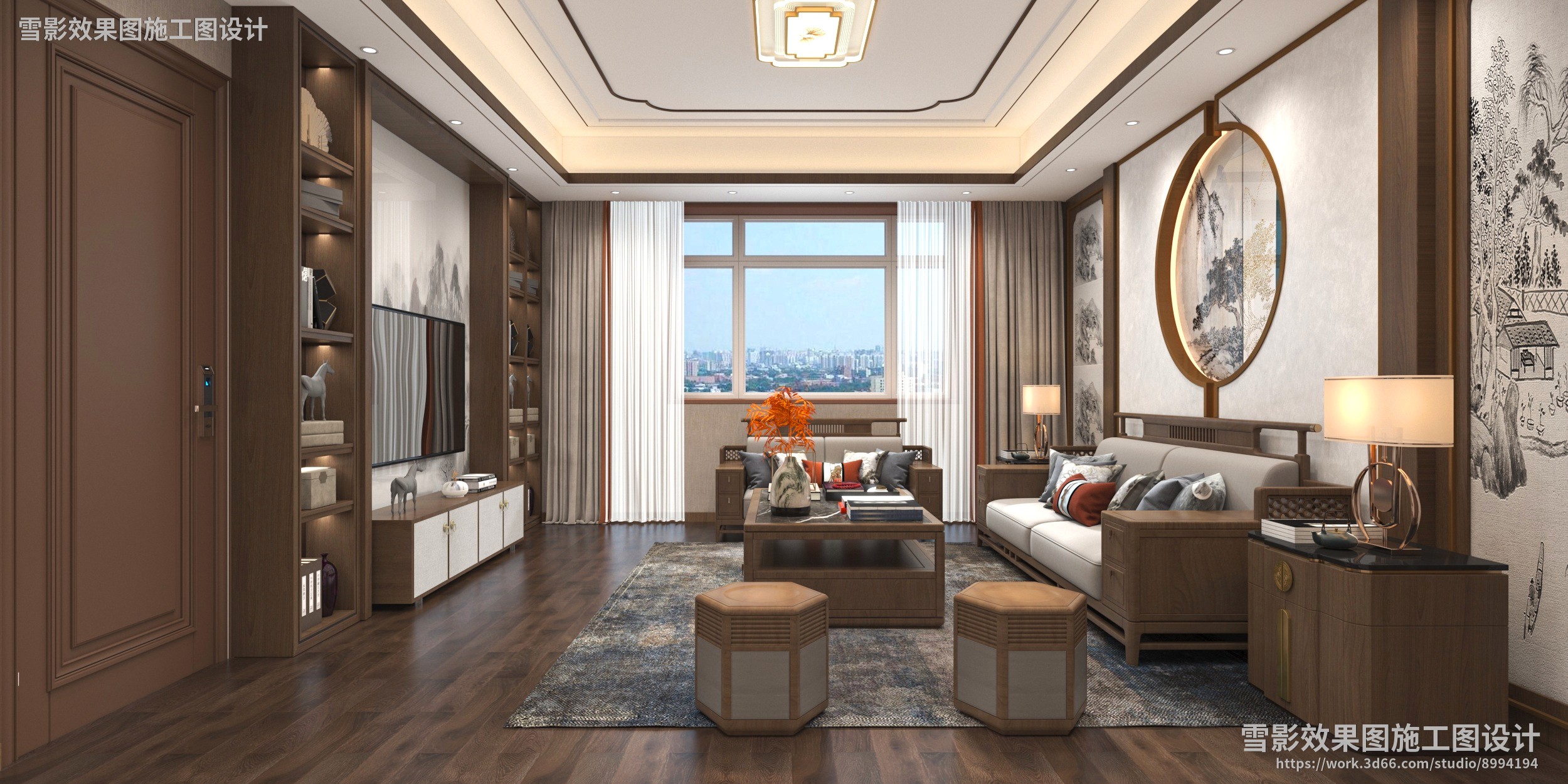 【作品案列】雪影效果图施工图设计 丨客厅