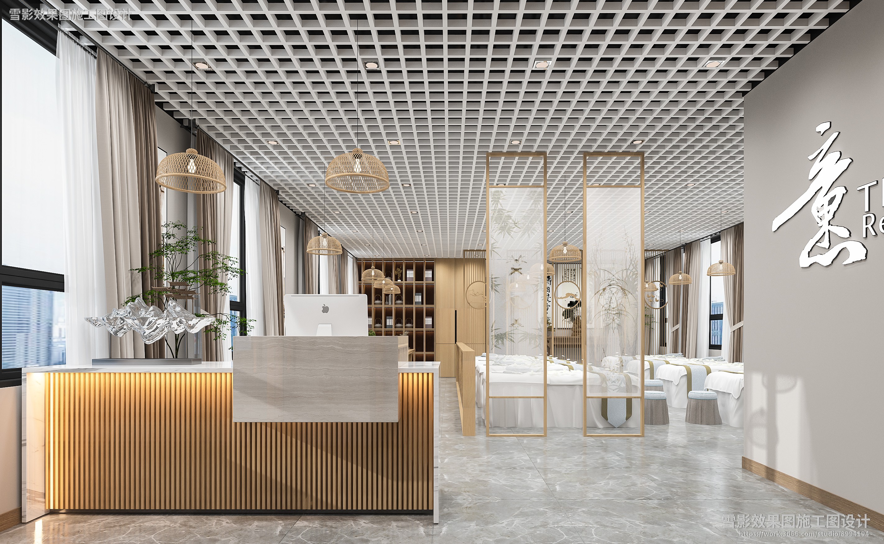 【作品案列】雪影效果图施工图设计 丨养生馆