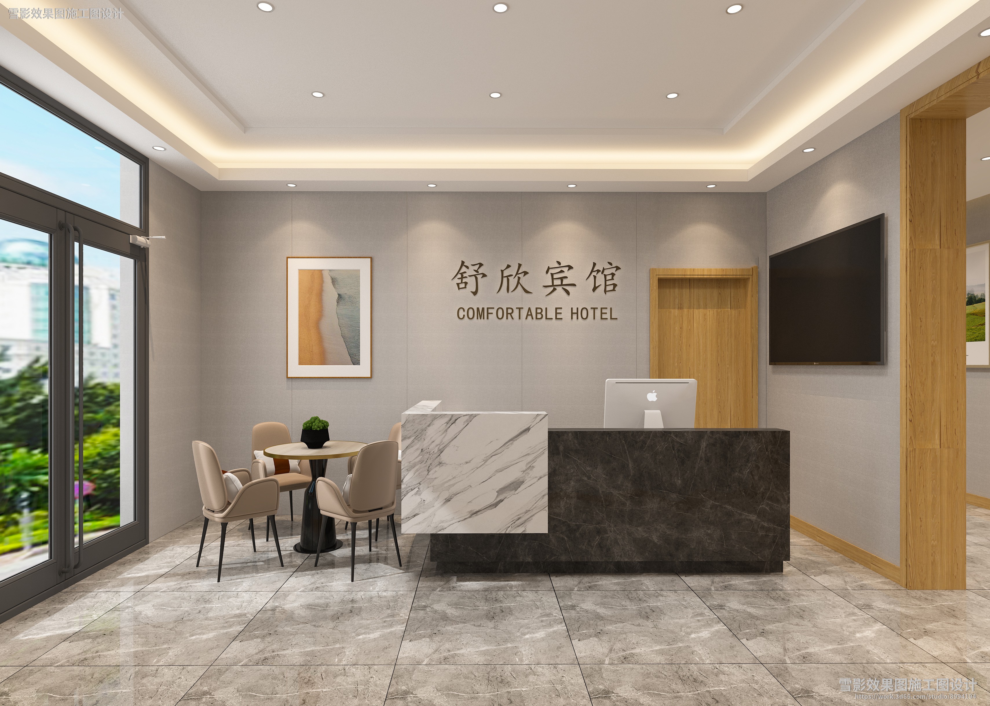 【作品案列】雪影效果图施工图设计 丨招待所