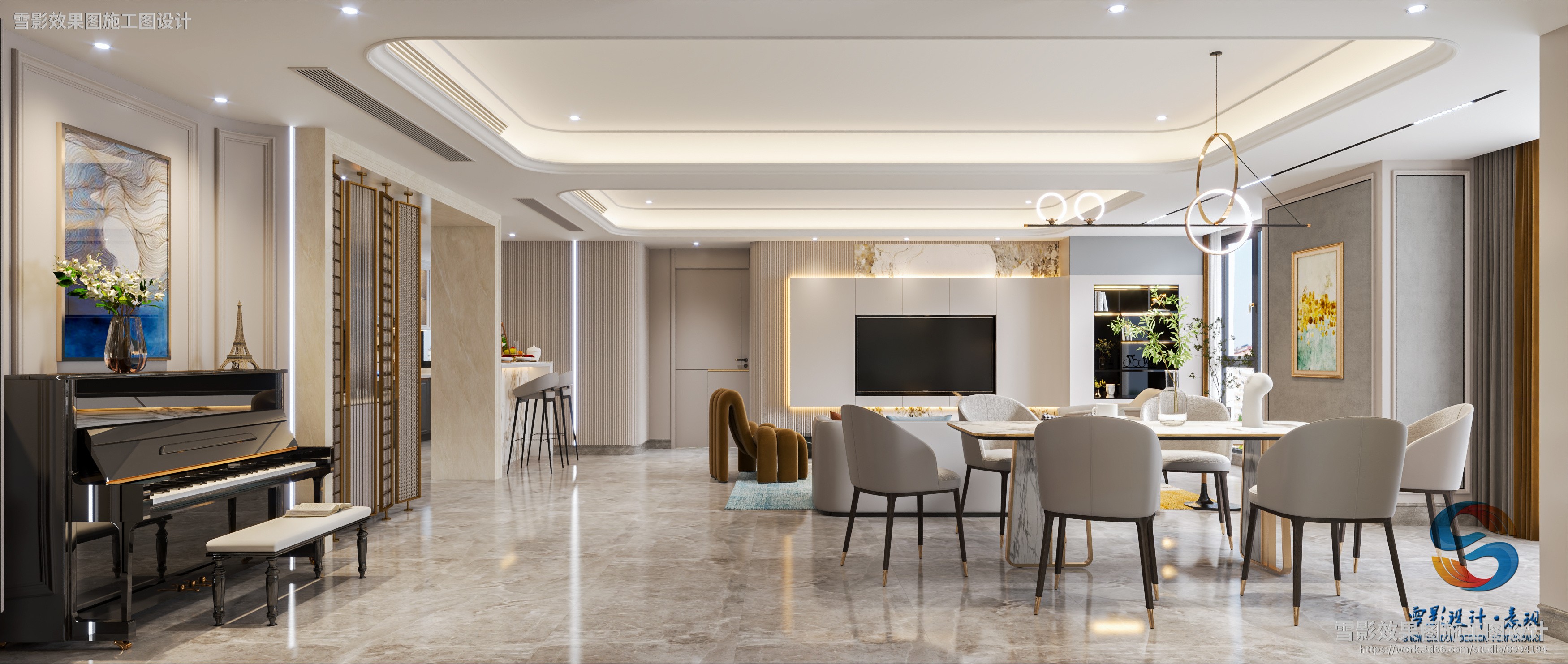 【作品案列】雪影效果图施工图设计 丨客厅