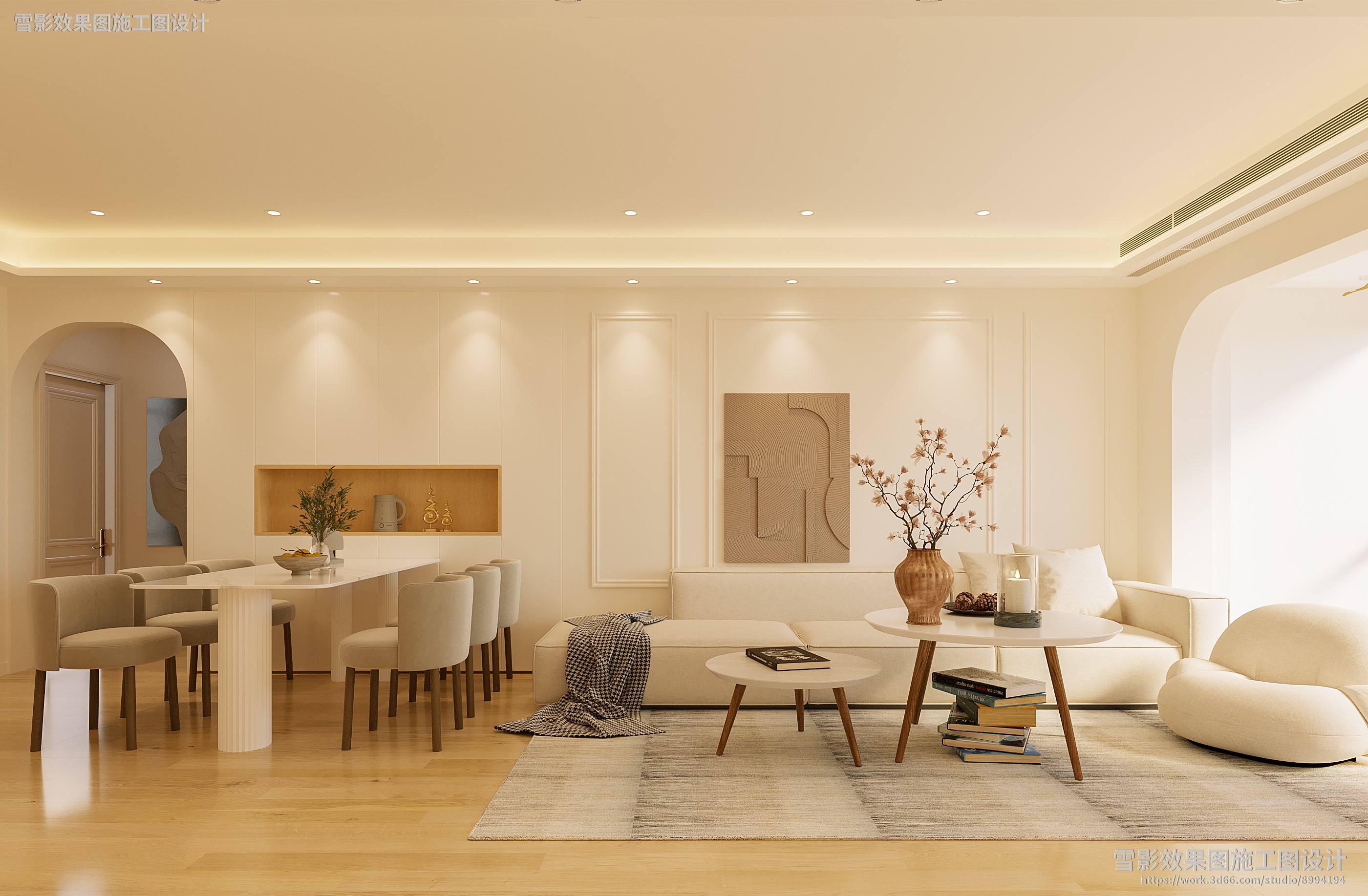 【作品案列】雪影效果图施工图设计 丨奶油风客厅