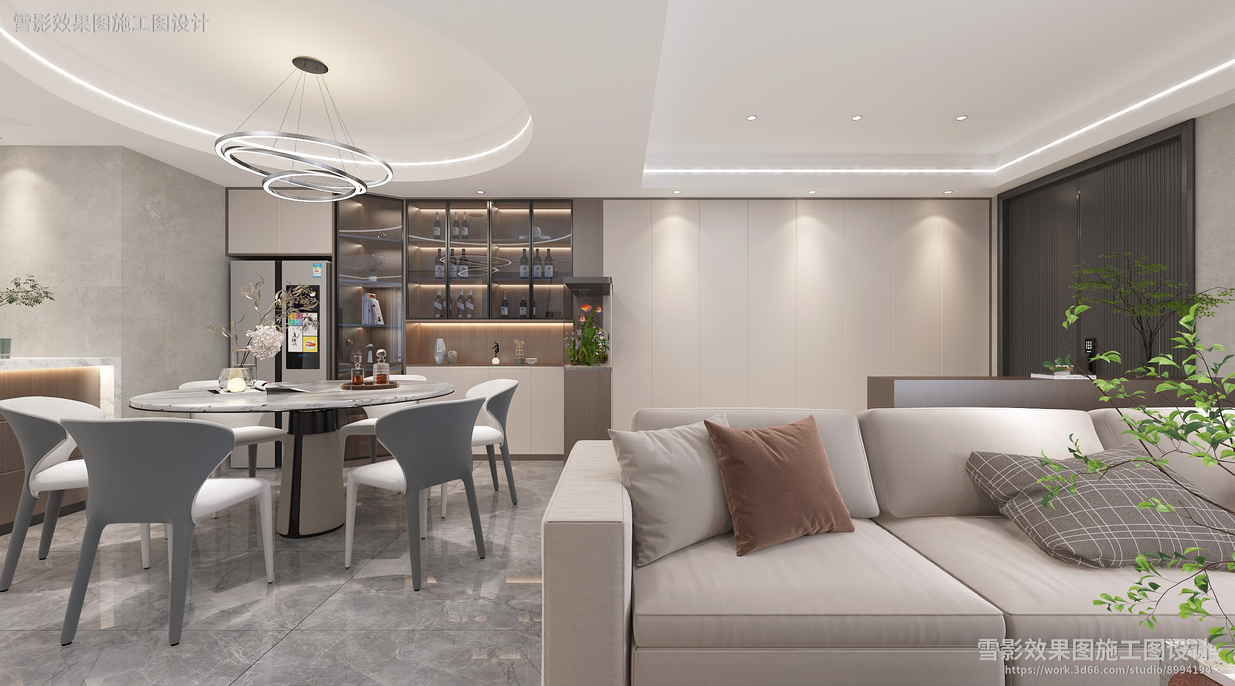 【作品案列】雪影效果图施工图设计 丨意式客餐厅
