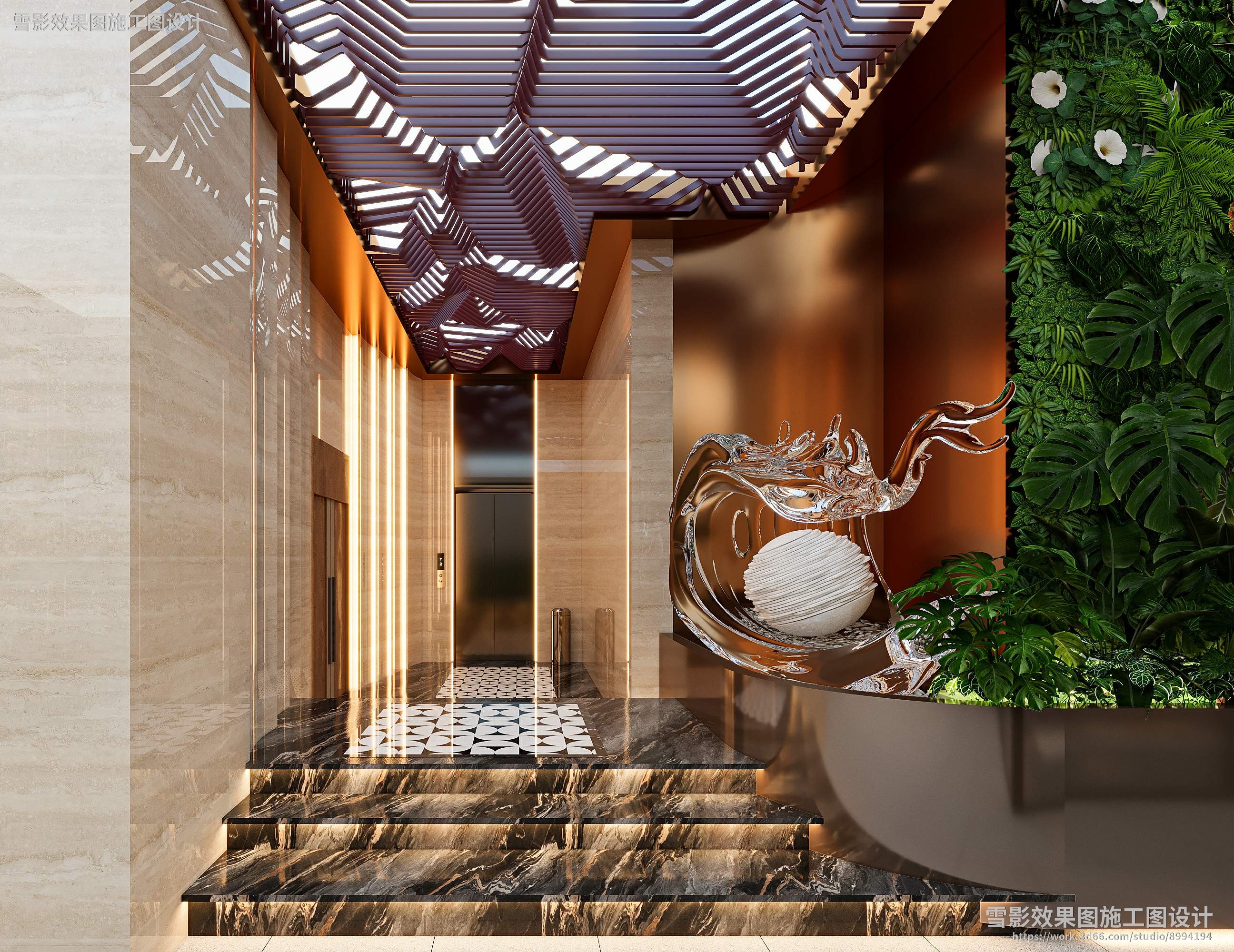 【作品案列】雪影效果图施工图设计 丨电梯口