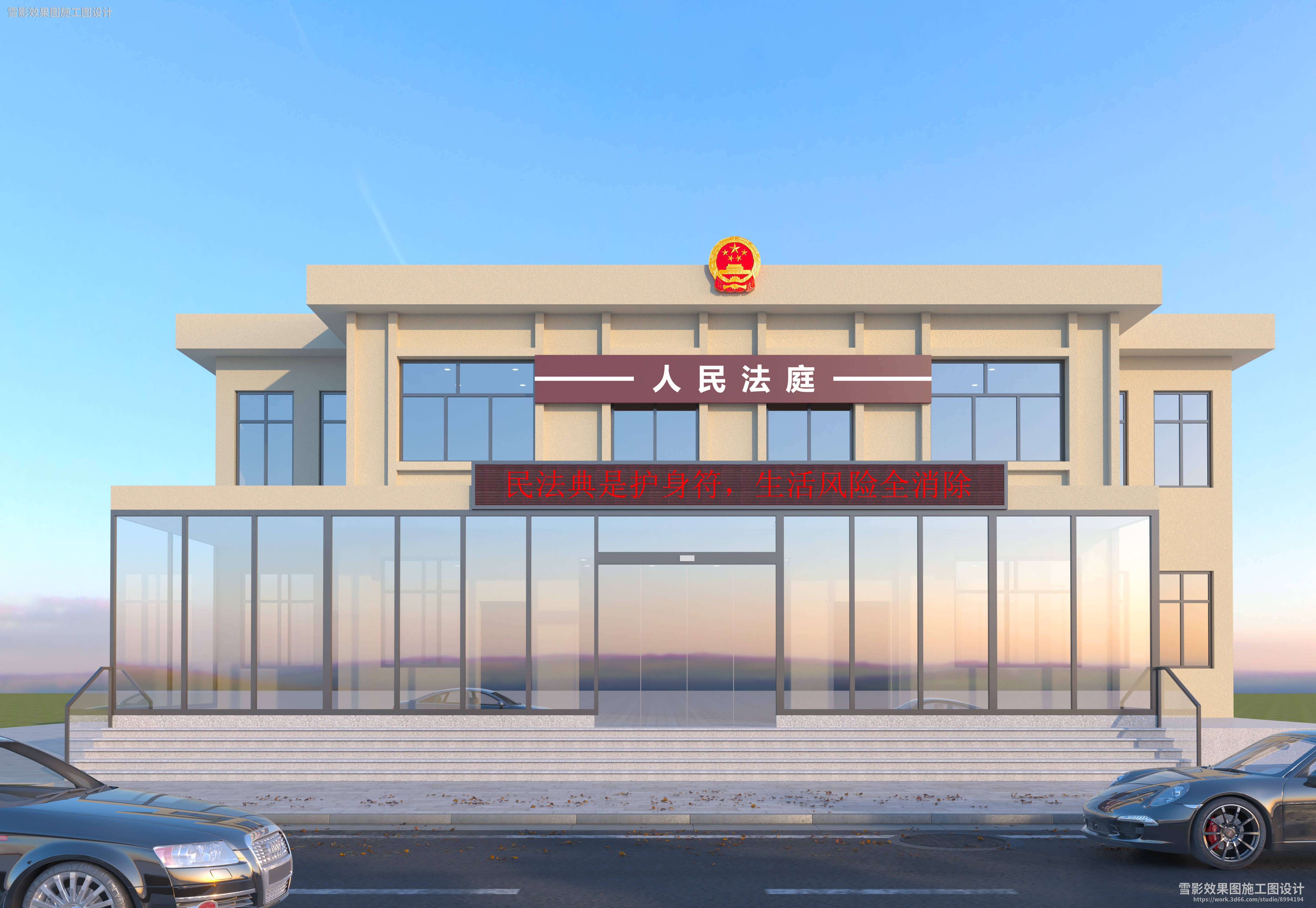 【作品案列】雪影效果图施工图设计 丨法院