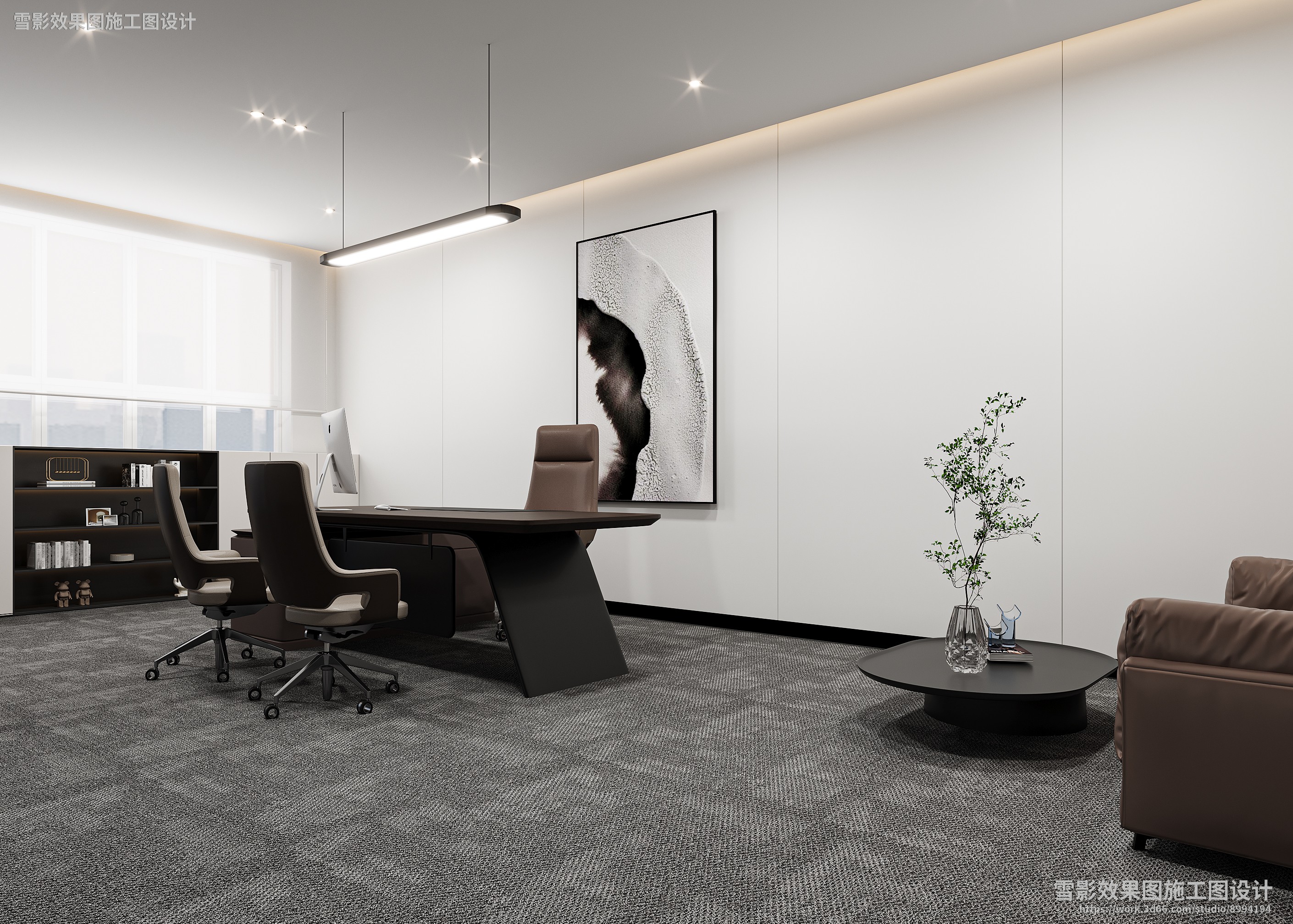 【作品案列】雪影效果图施工图设计 丨经理室