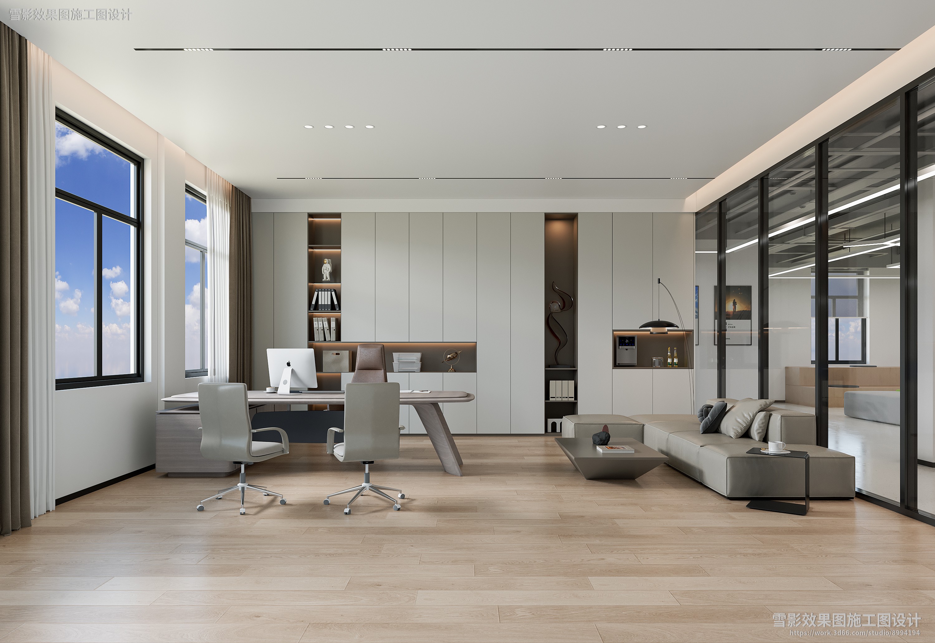 【作品案列】雪影效果图施工图设计 丨经理办公室