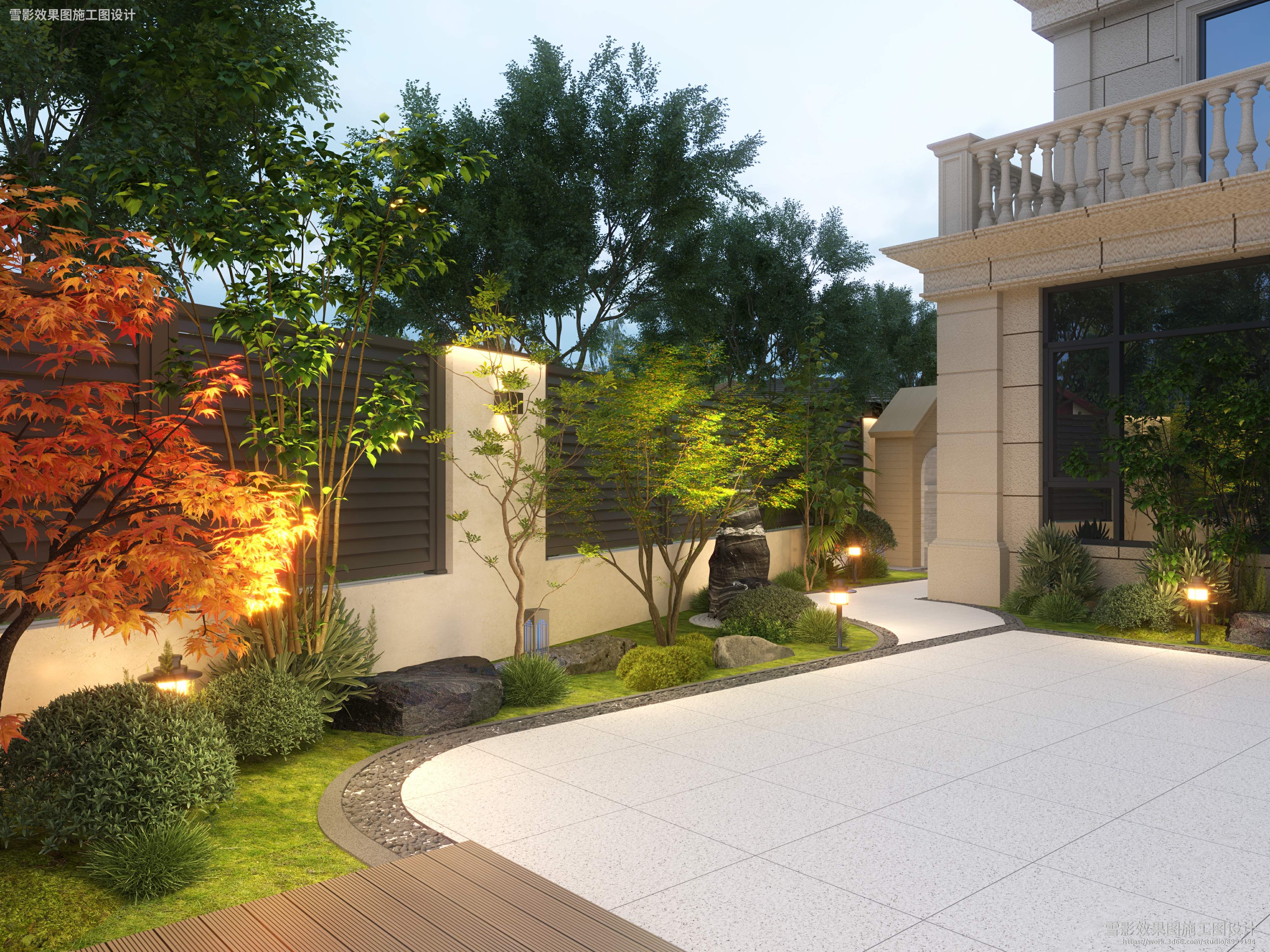 【作品案列】雪影效果图施工图设计 丨院子