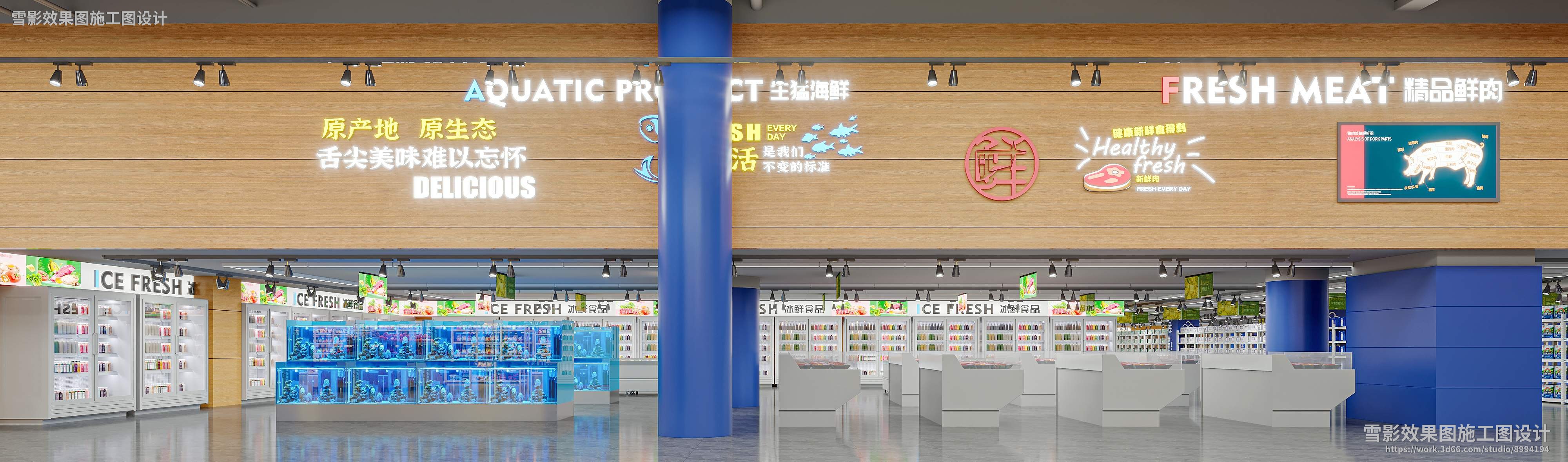 【作品案列】雪影效果图施工图设计 丨超市冻品区