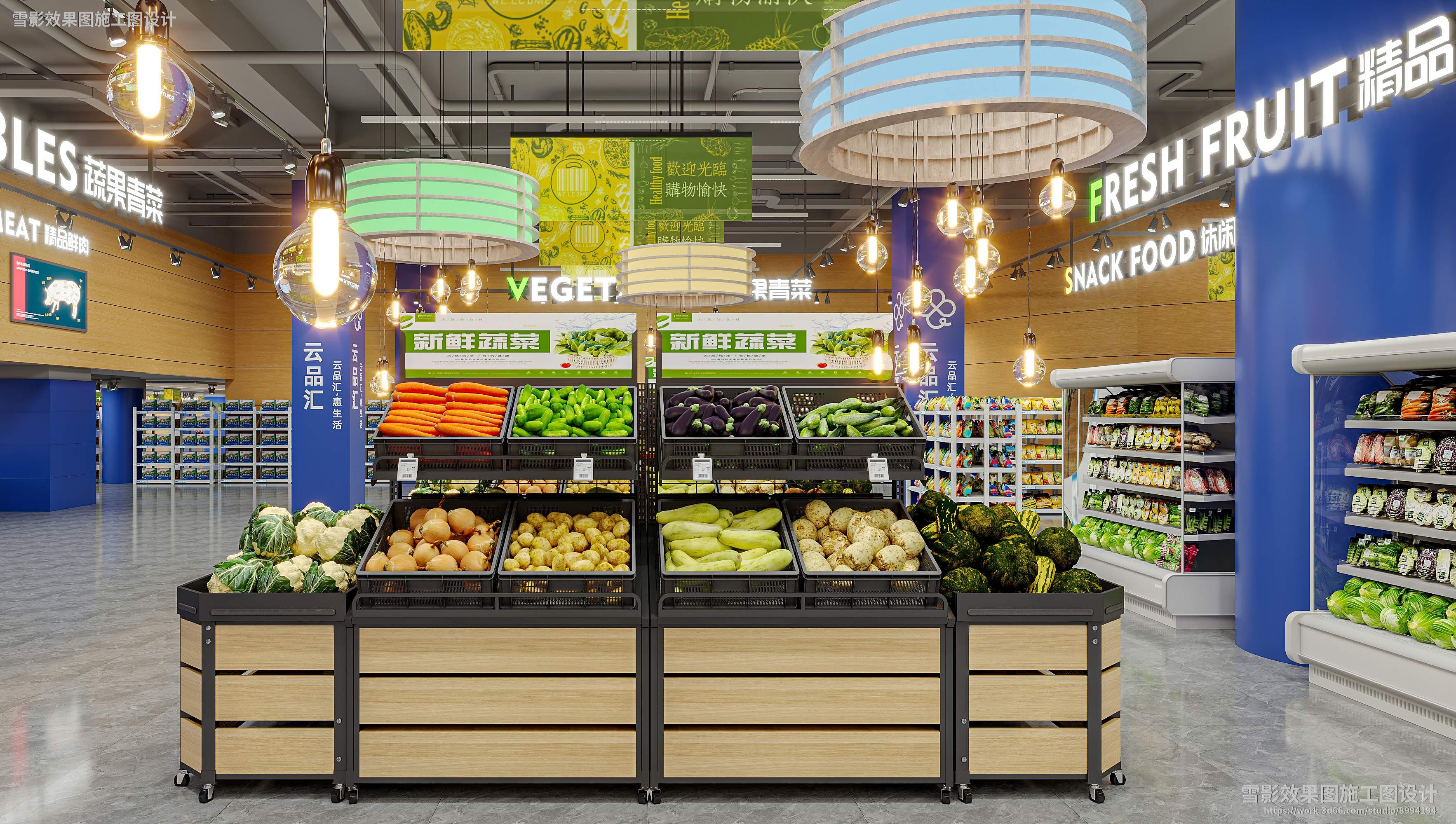 【作品案列】雪影效果图施工图设计 丨超市水果蔬菜区