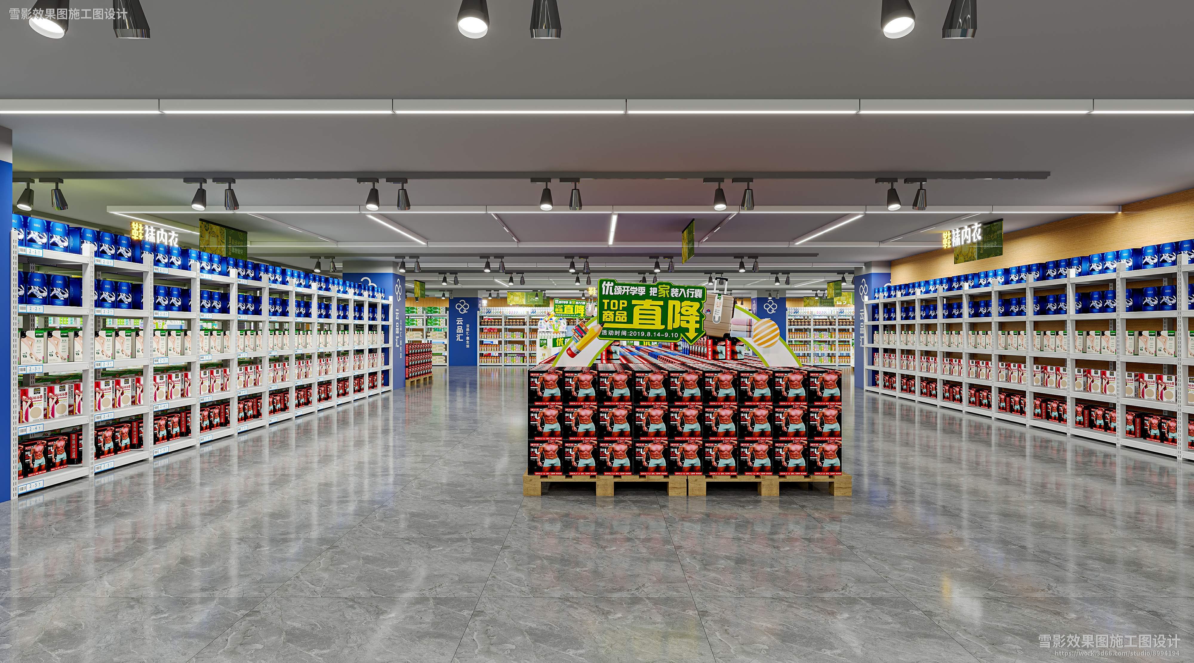 【作品案列】雪影效果图施工图设计 丨超市鞋袜内衣区