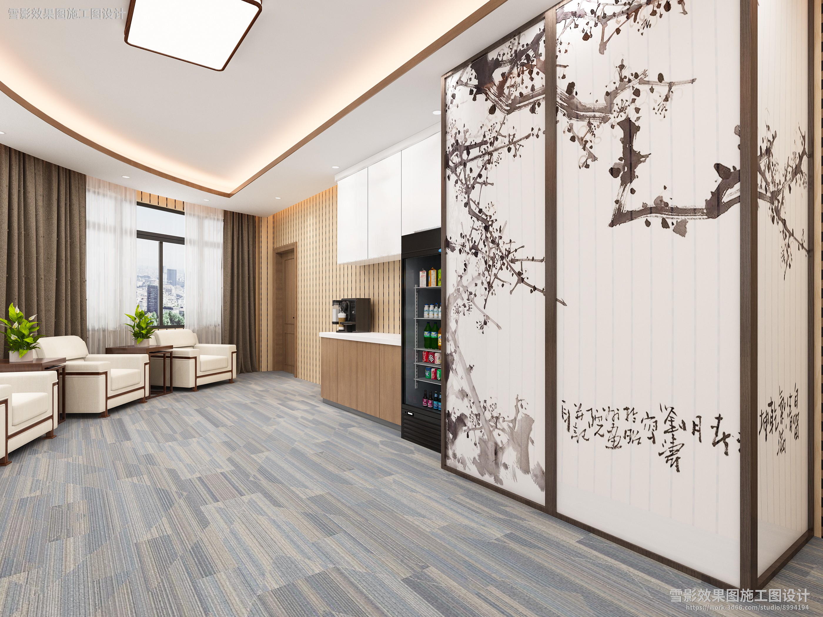 【作品案列】雪影效果图施工图设计 丨接待室