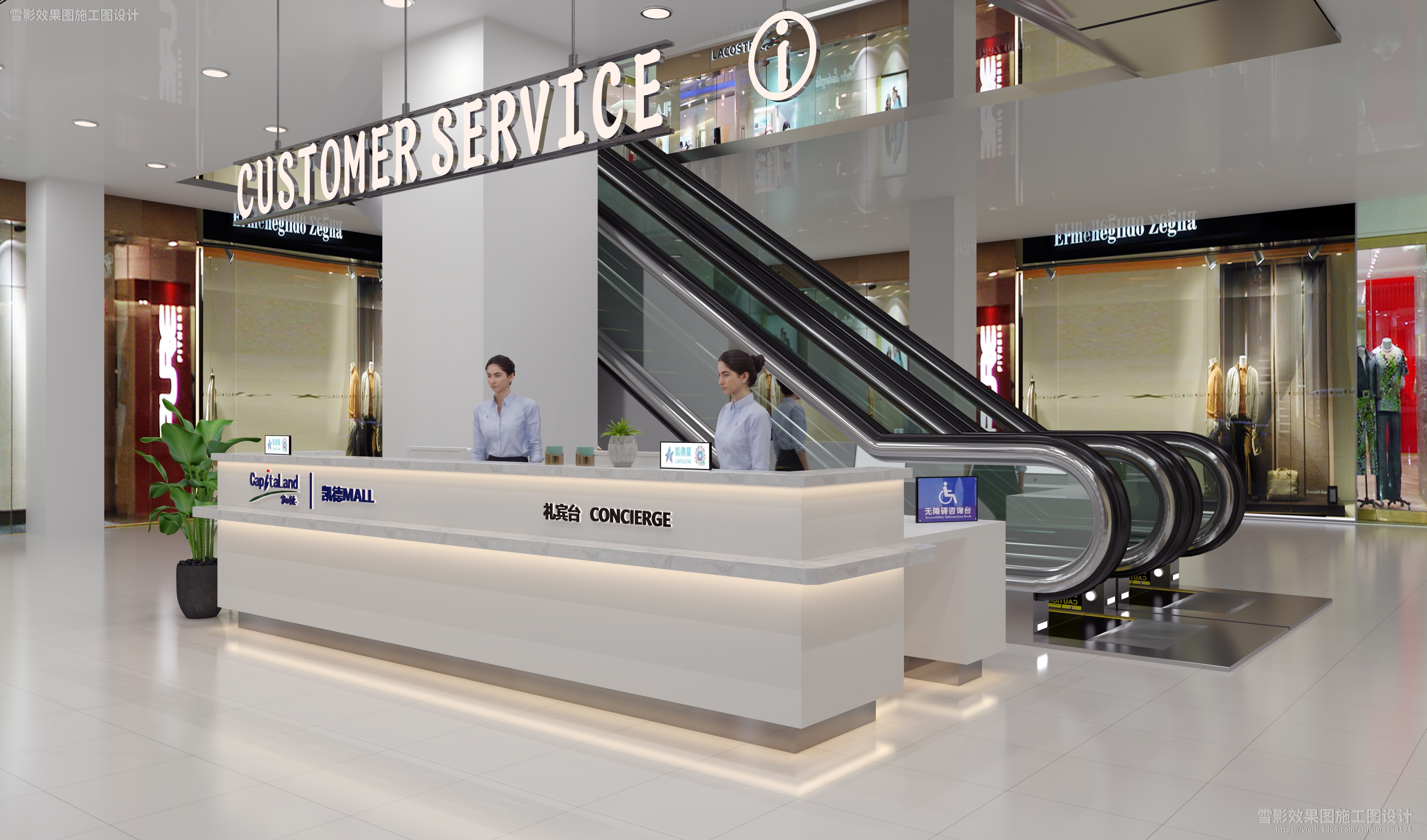 【作品案列】雪影效果图施工图设计 丨商场前台