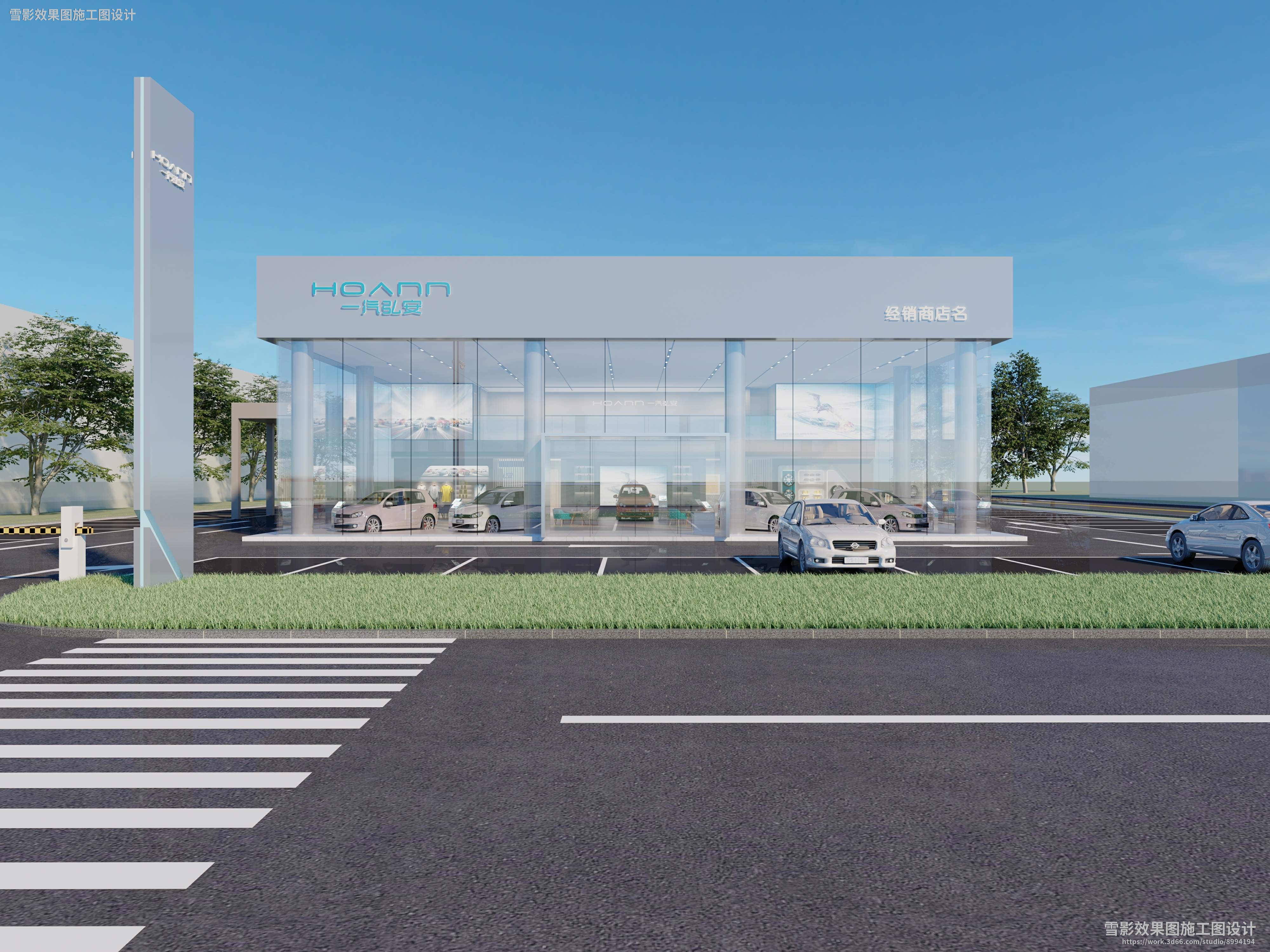 【作品案列】雪影效果图施工图设计 丨4s店
